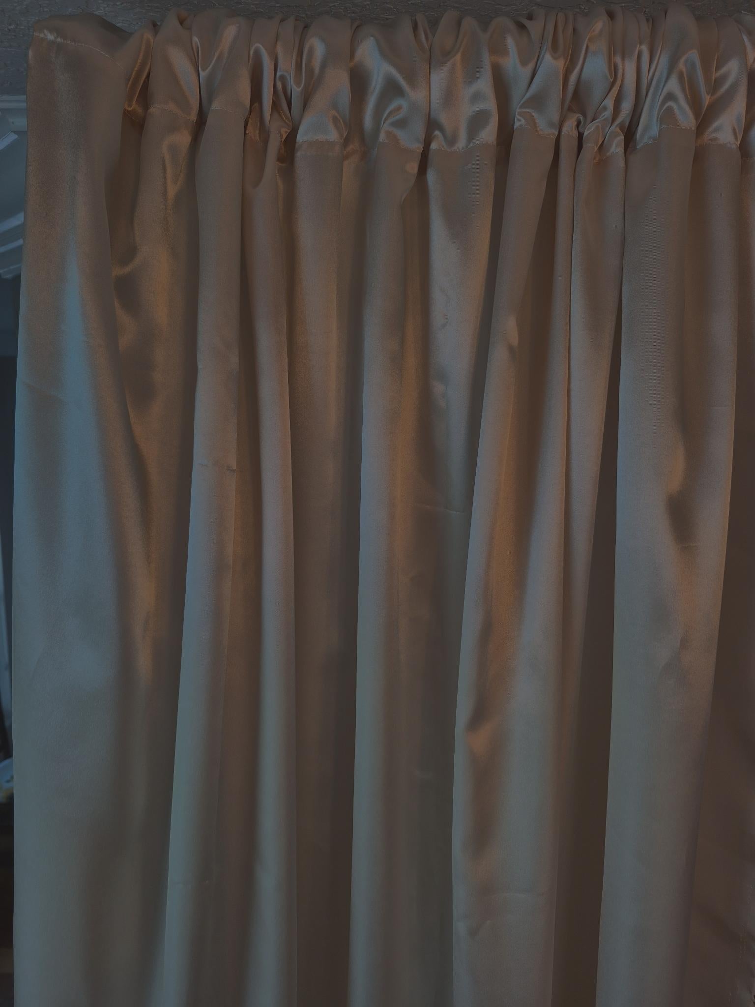 Luxurious, inherent FR Charmeuse Satin. Choose Length below. Hemmed with rod pocket. Pricing is based on length. Custom length will be quoted.